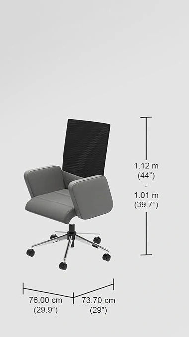 Mesh Back: The back designed in dual finish, not only enhances the aesthetics but functions to keep the upper back breezy helping you stay comfortable even in un-airconditioned spaces.